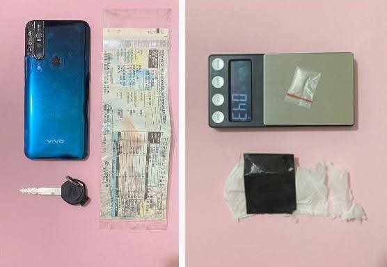 Polisi menyita sejumlah barang bukti, antara lain satu paket sabu dalam plastik klip dibungkus lakban hitam seberat 0,43 gram, satu unit ponsel Vivo V15 warna biru, dan satu unit sepeda motor Honda Beat putih.