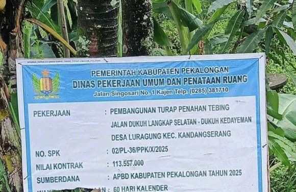 Berdasarkan informasi pada papan proyek, kegiatan tersebut merupakan Pembangunan Turap Penahan Tebing yang berlokasi di Jalan Dukuh Langkap Selatan – Dukuh Kedayeman, Desa Luragung.