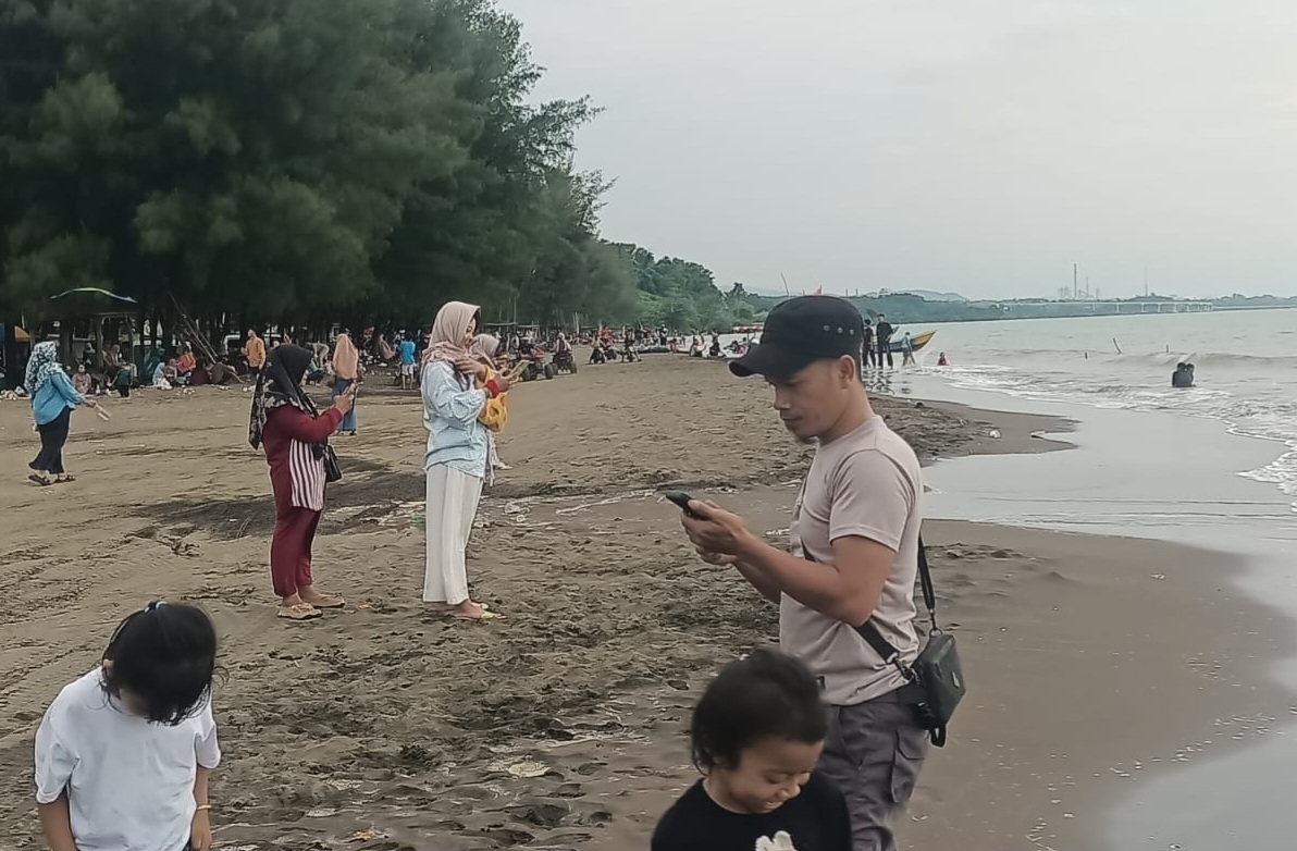 PANTURA24.COM,BATANG – Memasuki hari ketujuh setelah Lebaran, kawasan wisata Pantai Jodo yang berada di Desa Sidorejo, Kecamatan Gringsing, Kabupaten Batang, Jawa Tengah, dipadati pengunjung, Sabtu (28/3/2026). Wisatawan memanfaatkan sisa libur panjang untuk berwisata bersama keluarga.