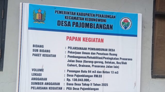 PANTURA24.COM, PEKALONGAN – Proyek pembangunan drainase di Desa Pajomblangan, Kecamatan Kedungwuni, Kabupaten Pekalongan, menuai sorotan […]